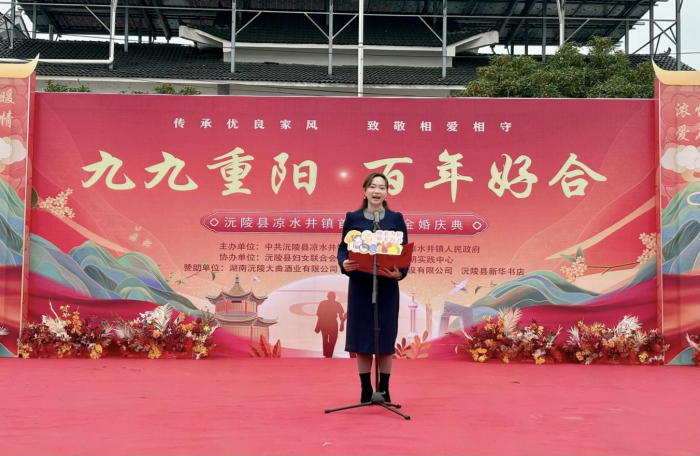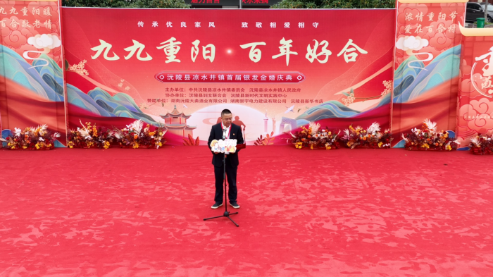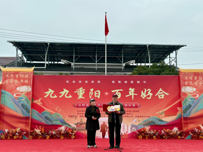 岁岁重阳,今又重阳。为弘扬中华优秀传统文化,涵养“珍视婚姻、孝敬老人、邻里和睦”的文明风尚,10月29日,由湖南怀化市妇联指导,沅陵县凉水井镇党委、政府和该县妇联、县新时代文明实践中心联合举办的“九九重阳・百年好合”银发金婚庆典在当地百合村同心广场温情启幕。怀化市妇联党组成员、副主席罗菲菲,沅陵县人民政府副县长钟群英,各主办单位相关负责人,钻石婚、金婚、银婚夫妇代表,乡贤代表及老人代表等齐聚一堂,以仪式感满满的庆典,致敬岁月爱情,传承尊老美德。
