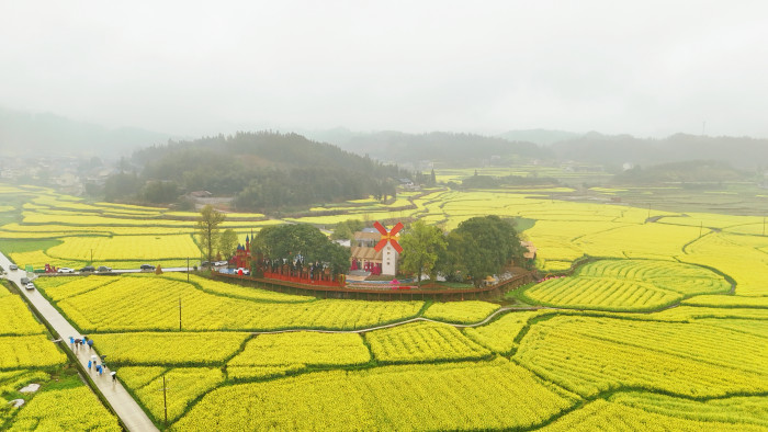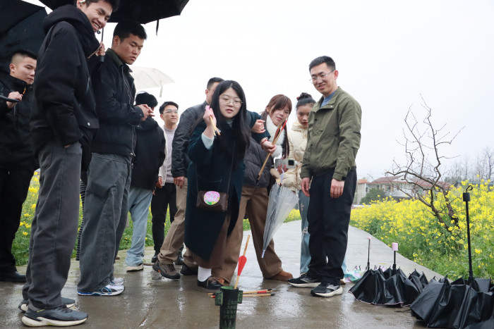 游戏环节结束后,青年们结伴开启春日游园之旅。漫步在堡子镇一望无际、金黄绚烂的油菜花田间,清新的春风裹挟着花香扑面而来,旖旎秀美的田园风光令人心旷神怡。大家共同完成书写“囍”字、油菜花田合影等打卡任务,在繁花似锦的美景中定格美好瞬间,交流过程中也悄然萌生了好感与默契。