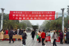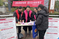 3月5日上午,绥宁县妇联联合县检察院、县司法局、县法院、县教育局、县总工会、中国人寿绥宁支公司等单位在绿洲广场联合开展2026年“建设法治绥宁˙巾帼在行动”三八维权周宣传活动