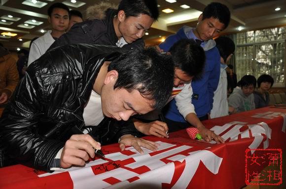 群众在横幅上踊跃签名