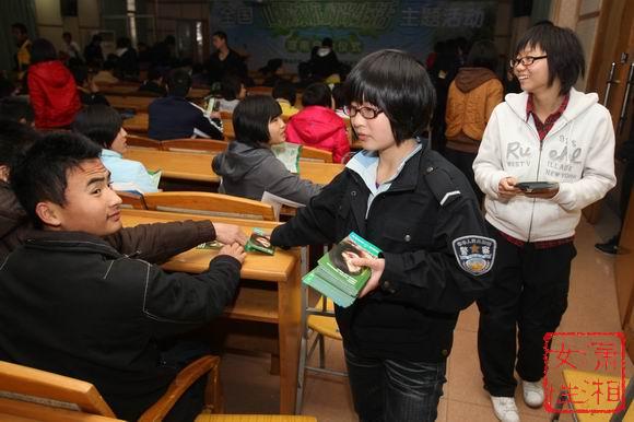 志愿者向群众发放宣传资料