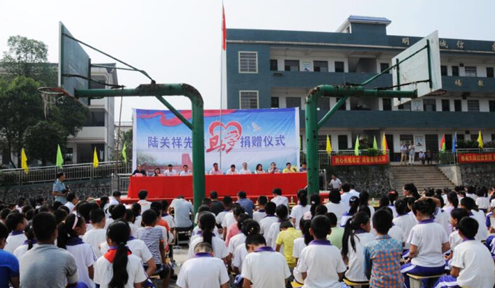 9月5日上午,浙江大陆集团董事长陆关祥再次捐资200万元,在新宁崀山镇陆楠中心小学征地修建一栋新教学楼,为学校配置课桌,为学生配置书包、文具、校服等学习用品。此外,还继续在崀山镇、黄金乡扶助60名贫困学生和10名代课教师。陆关祥及夫人张素芳,新宁县委常委、副县长、宣传部长杨文国,邵阳市教育局副局长刘运礼,新宁县人大副主任兰忠明参加捐赠仪式。