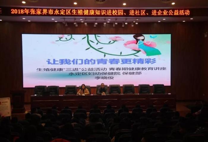 为贯彻落实十九大精神,推动儿童健康事业发展,切实提高中学生生殖健康知识水平及自我防护意识,加强中学生青春期健康知识教育。近日,永定区妇联组织了生殖健康知识进校园、进社区、进企业公益活动,邀请了区妇幼保健院专家走进张家界一中,为500余名中学生宣讲青春期健康知识,该活动由区妇联副主席田雪英主持,区妇保院保健部主任李晓俊授课。
