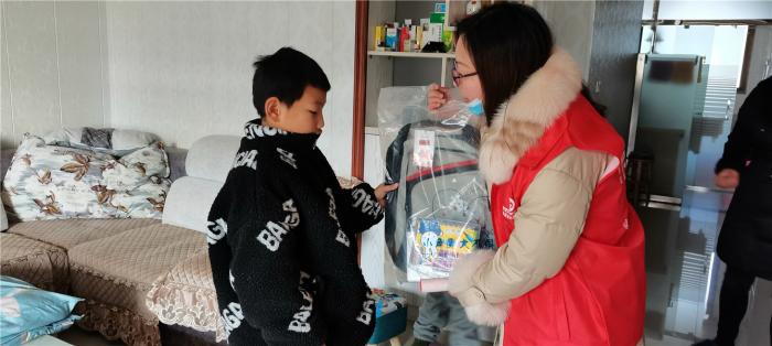 随后,爱心志愿者深入凤凰乡青港村、河市镇幸福村向孩子们宣传取暖用电、滑冰滑雪、交通事故、疫情防控等相关知识,并为留守儿童、困境儿童送去了书包、文具等学习、生活用品。