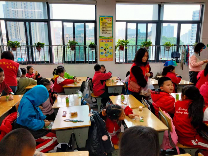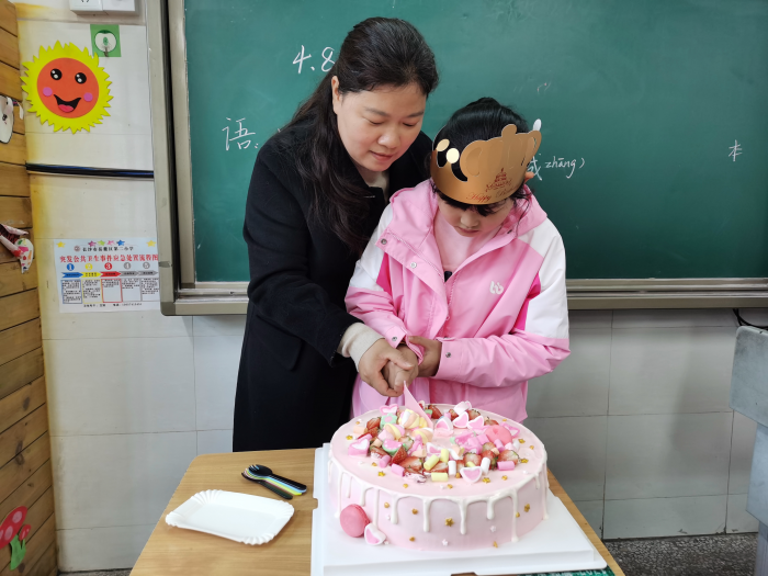 一个简单的生日会,对大多数孩子来说再普通不过,但对困境儿童来说成了一种奢望。今天是朵朵10岁的生日,她最大的愿望就是能和小朋友们一起吹蜡烛、切蛋糕、唱生日歌……,在征得孩子家长和老师的同意后,岳麓区民政局社会事务科副科长陈渝,儿童专干李曲、岳麓区志愿服务联合会志愿者、西大门社区妇联主席谭波一行来到学校为朵朵圆了生日会的梦。