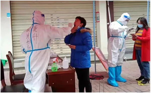 到达怀化后,龚升分配在盛世华都小区,为社区居民进行核酸采样,对未能集中核酸采样的老弱病残等不便人群进行入户核酸采样,工作到第二天凌晨6点才结束。李晚英则分配到了中风险区的城中街芷江路,到达筛查点后也马上投入到核酸采样工作中。初春的夜仍然寒冷,来时匆忙,衣着单薄的她重复进行着采样、消毒、标本清点……直至第二天凌晨5点。就这样,母子齐上阵,在疫情防控一线,共同为抗击疫情而努力奋斗。