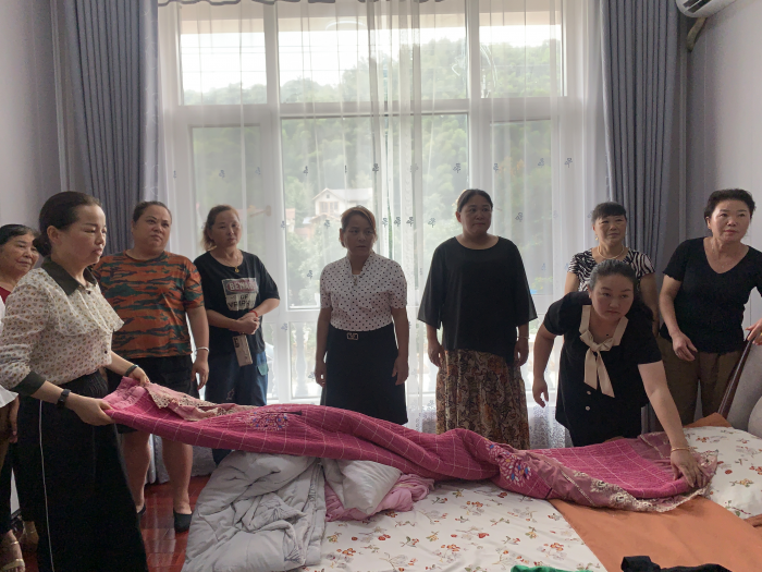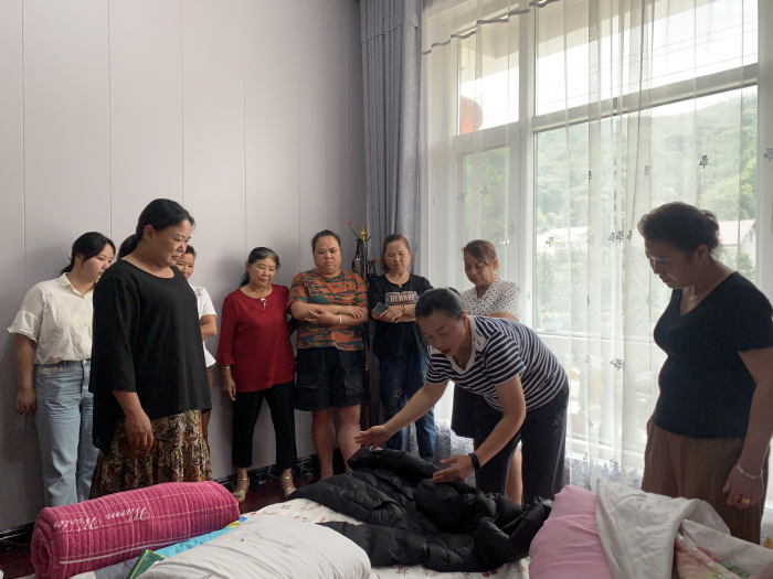 “原来这种叠衣服小技巧叫做‘口袋法’,我回去以后要多练习,把学到的知识教给姐妹们。”“大家要注意物品归类,留意折叠手法,这样才能更好地进行衣物收纳。”