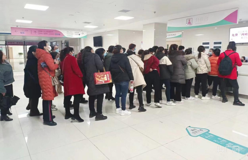 适龄妇女在县妇幼“两癌”免费筛查窗口有序排队登记(央广网发 朱慧珍 摄)