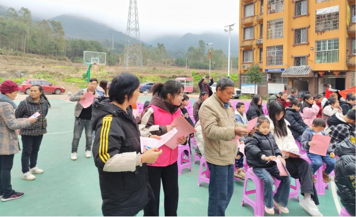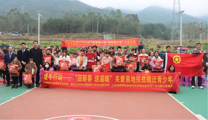 在春节来临之际,水口镇妇联组织联合共青团江华瑶族自治县委、湖南江华农村商业银行股份有限公司等部门在幸福社区易地扶贫搬迁安置点开展了“把爱带回家——真情暖童心,相伴护成长”2024寒假关爱服务活动。