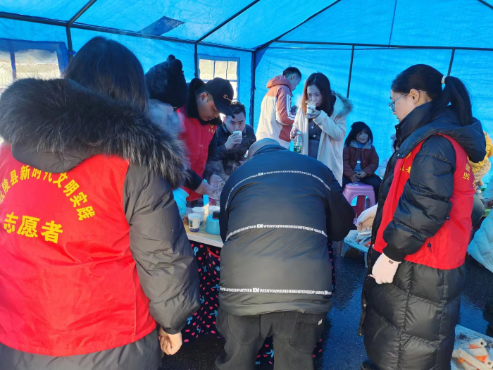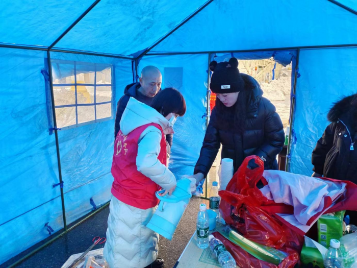 “终于吃到热乎乎的东西了,太感谢了……”在凉水井镇应对冰冻雨雪天气暖心服务点(沅陵高速服务点),一位10岁的小朋友边吃泡面边说,她和爸爸妈妈从杭州出发,遇到雨雪天气,在高速上已经停滞了三天三夜,能吃上一口方便面,喝上一杯热水,感到非常开心。在服务站点,巾帼志愿者们烧水、生火、倒水、发物资、搀扶……忙的不亦乐乎,为滞留人员、环卫工人等开展暖心志愿服务,以实际行动传递爱心,传播正能量。
