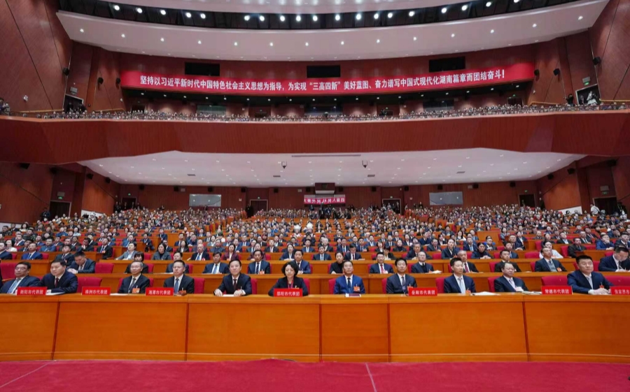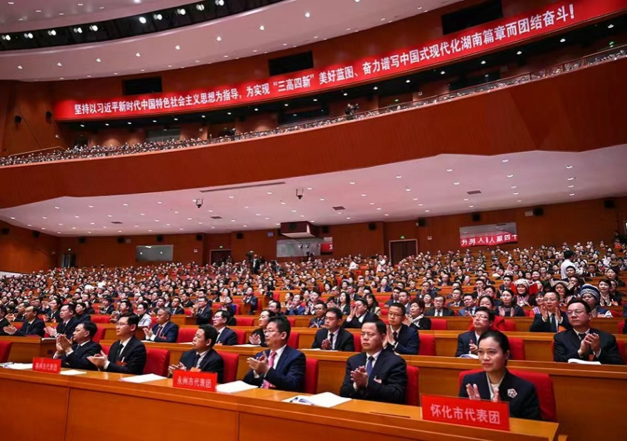 毛伟明说,“十四五”时期是我们感恩奋进、阔步向前的五年。党的十八大以来,习近平总书记四次亲临湖南,给湖湘儿女带来了党中央的亲切关怀和殷切期望。这五年,我们牢记嘱托、砥砺前行,在打造“三个高地”上持续用力,在推动中部地区崛起和长江经济带发展中奋勇争先,奋力谱写中国式现代化湖南篇章。五年来,“三个高地”标识度明显提升,创建了5个国家先进制造业集群、居中部第1,区域创新能力跃升至全国第9位,对非贸易额稳居中西部第1;综合经济实力不断增强,五年增量超1.36万亿元,人均地区生产总值达1.19万美元;基础设施支撑力更加坚实,高速公路、高速铁路、航道通航总里程均居全国前列,算力、算法、算据、算网“四算一体”协同发展,电力供应由“硬缺口”转为“紧平衡”,湖南从全国电网末端转向区域电力交换枢纽;农业农村现代化稳步推进,水稻、油茶产量位居全国第1,农村居民收入增速持续高于城镇居民;人民群众获得感持续提高,连续部署推进“十大重点民生实事”,“四水”干流稳定在Ⅱ类水质,生产安全事故起数、死亡人数持续下降。