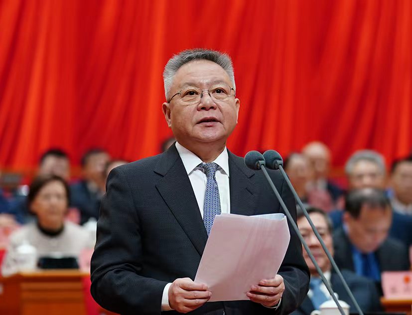 在热烈的掌声中,省长毛伟明代表省人民政府向大会作工作报告。报告分四个部分:一、2025年和“十四五”时期工作回顾;二、“十五五”时期主要目标任务;三、关于2026年工作;四、全面加强政府自身建设。