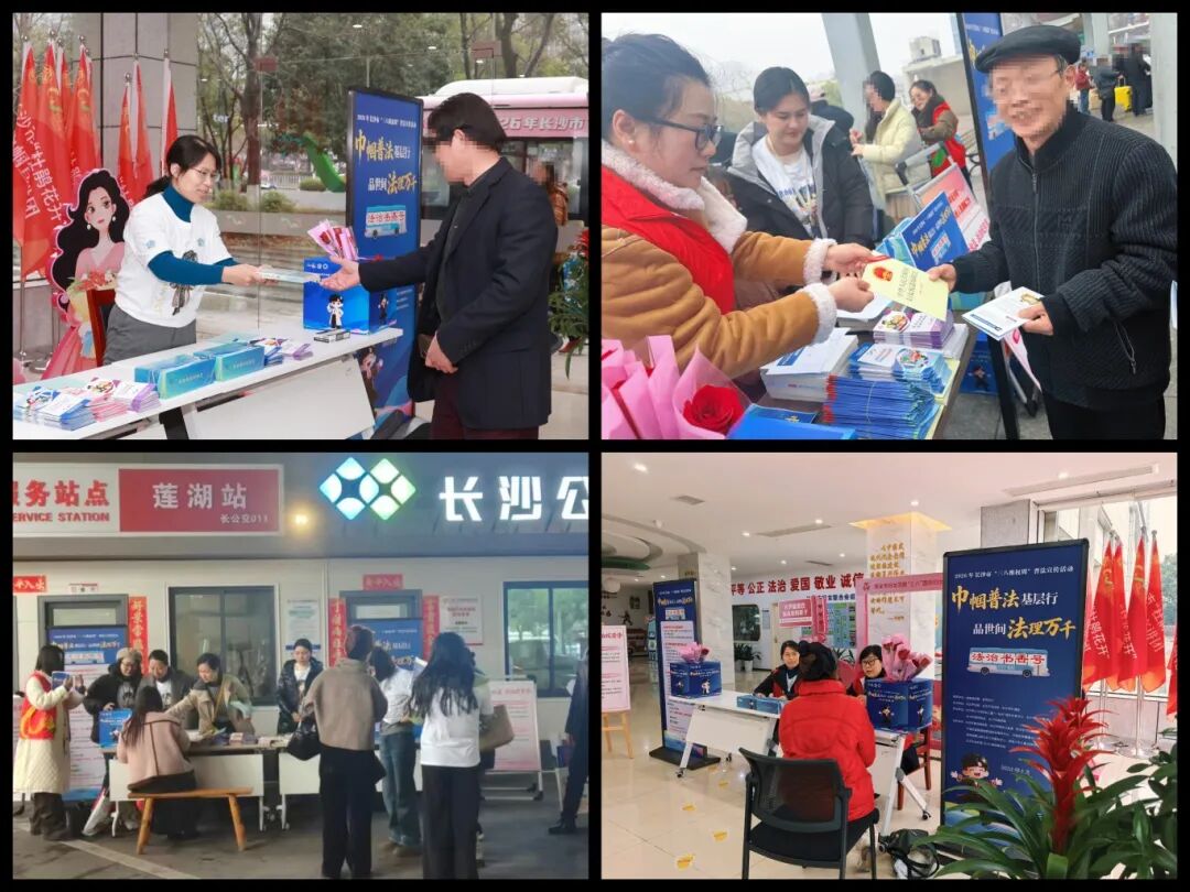 本次活动由长沙市妇联、市司法局、市交通局主办,市公交集团、市律师协会、市婚姻家庭纠纷调解委员会承办,整合10余家社会机构力量,联动专业律师、心理咨询师、家庭教育指导师等志愿者100余人,依托长沙市12338妇女儿童“一站式”维权关爱中心,形成“普法+服务+维权”一体化机制。活动当日吸引近千名群众参与,收集法治心愿40余条,发放书籍300余册、宣传资料2000余份。